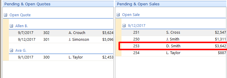 In the example below, our Quote 303 is now Sale 253.