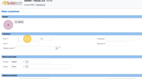 3 Type in as much known information as you have for the Customer including: First, Last, Display Name (mandatory fields) and Company, Account # (optional fields)