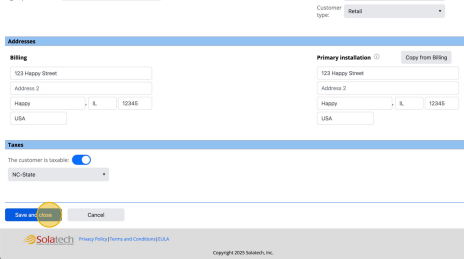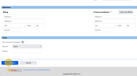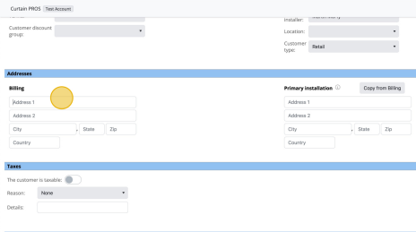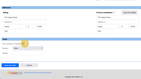 9Toggle on/off "the customer is taxable" if tax needs to be applied to the customer quote. Add in Reason and Details as necessary.