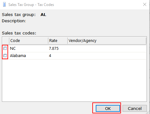 If a Sales Tax Group is changed by adding, deleting, or editing a tax code, the change will not be reflected in any existing quote/sale/order, unless it is updated.