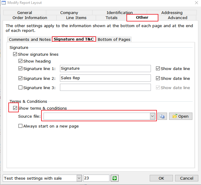 Summary This article will explain how to add information and/or images to the Comments section on an invoice. For example, “Terms and Conditions”, Notifications or images may be placed in the “Totals and Other” section of a report. The following ...