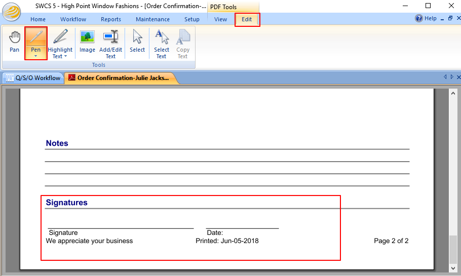 Summary This article provides information on capturing a customer signature using Adobe Reader to preview quotes or orders in Solatech. This can be used as an alternative to Journal Note Writer for Solatech users with tablet PCs. More Information To ...