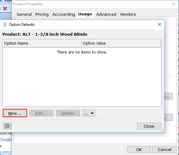 - On the Option Defaults window, click on New.