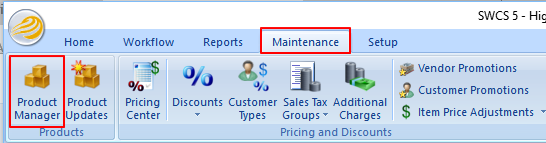 - From within the SalesPRO software, go to the Maintenance tab and select the Product Manager icon