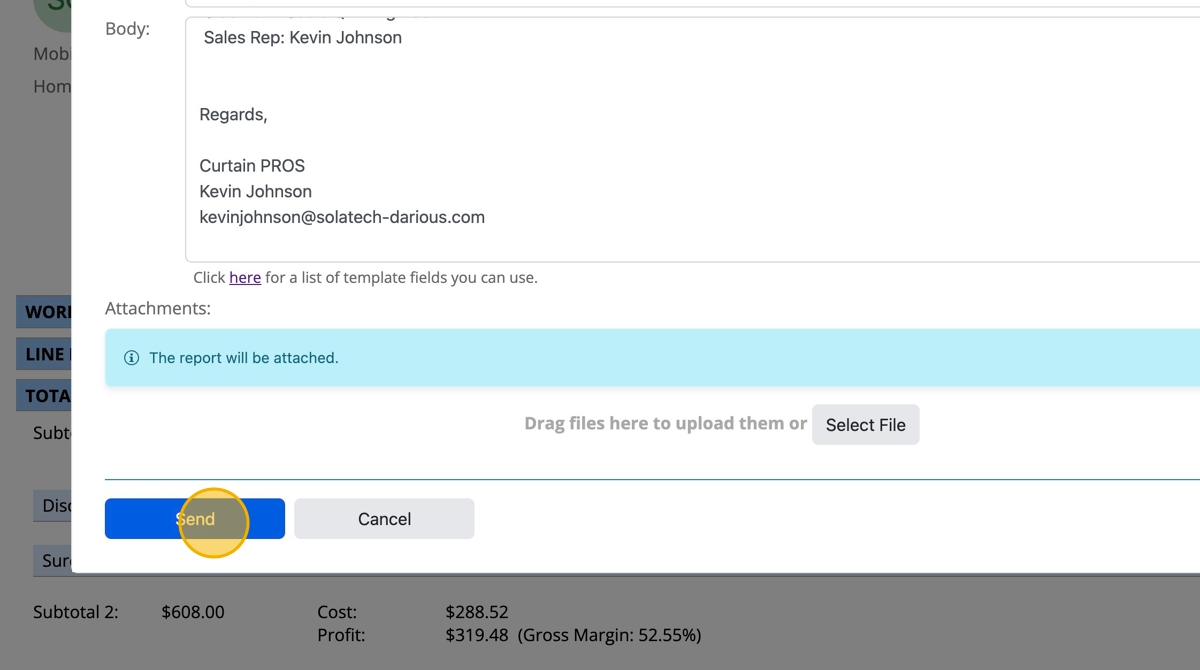 1. Adjust the email, and click the "Send" button when finished. Tip! You may add an attachment by selecting "Select File" button