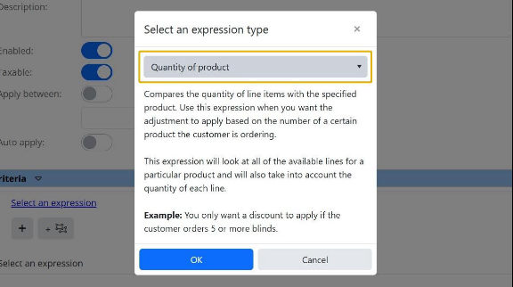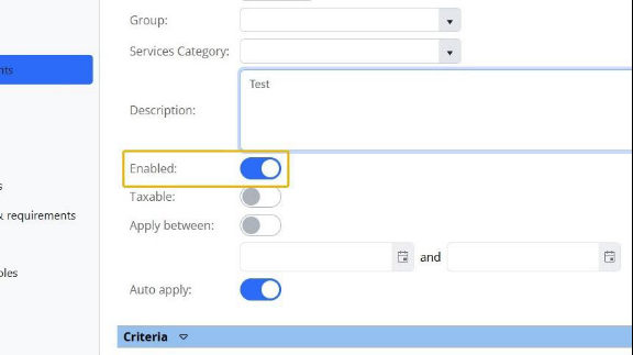 Note: The criteria determines when this adjustment will apply to the quote or sale.
