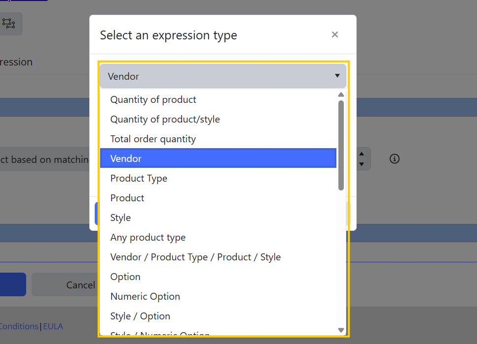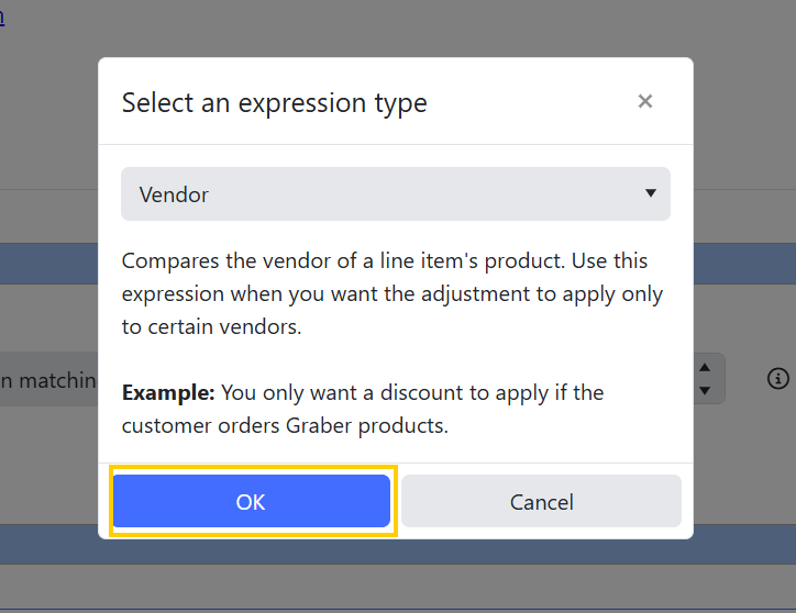 - Click "Select an Expression" to Begin Adding Criteria to the Adjustment