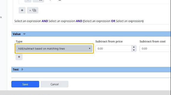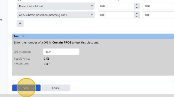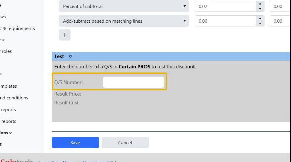 - The "Test" section allows you to test your adjustment on a specific Quote or Sale