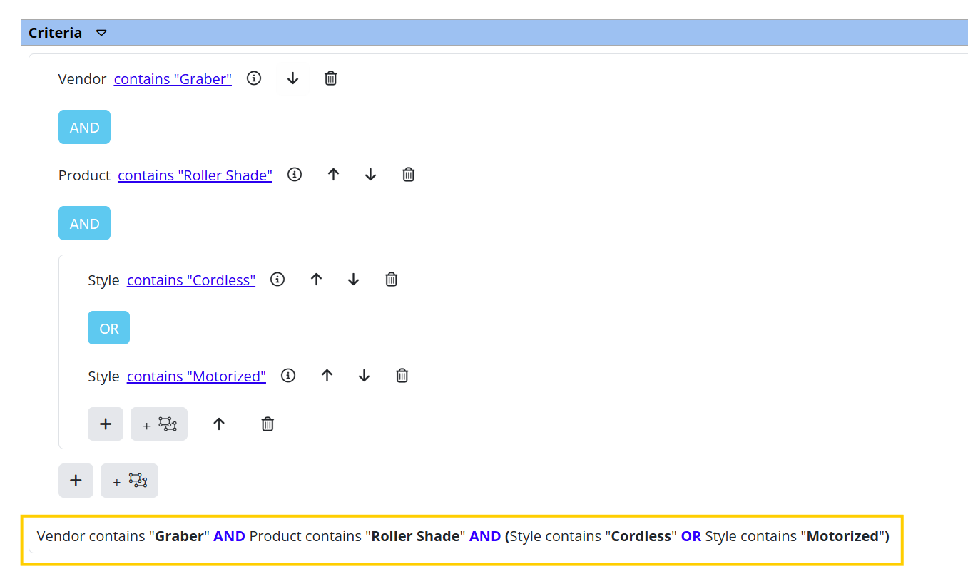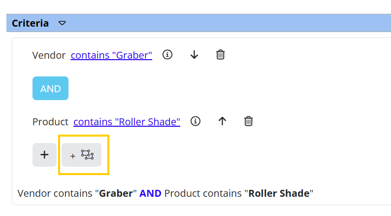 - Click "AND" to switch between “AND” and “OR” criteria.