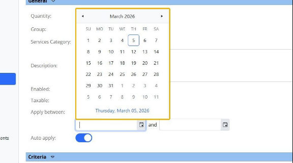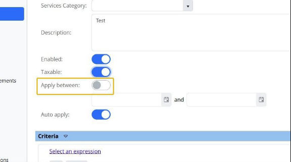 - Use the “Apply between” toggle switch to set a date range for which this adjustment will apply.
