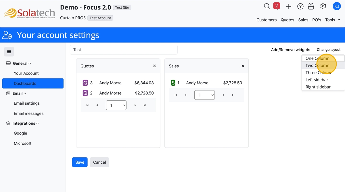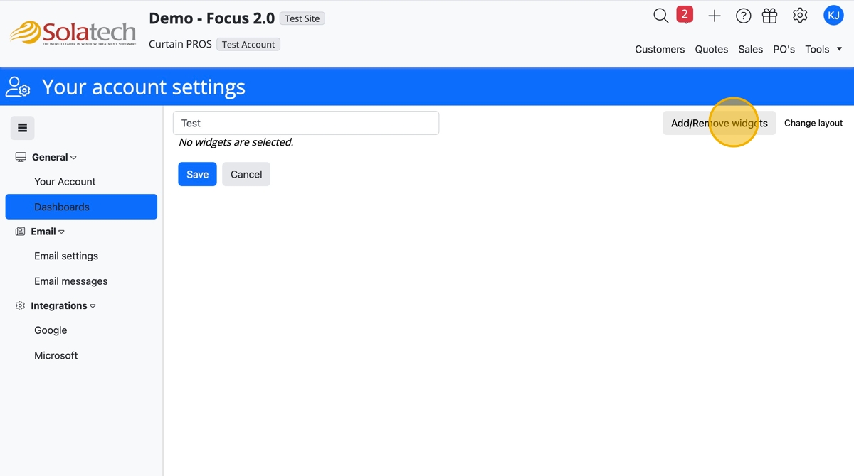 - Toggle on Customers, Quote, or Sales widgets, then click "Done"