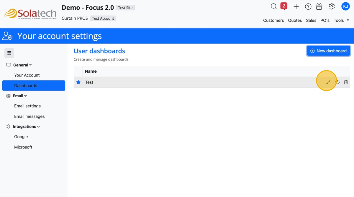 - To edit a dashboard, click "pencil icon"