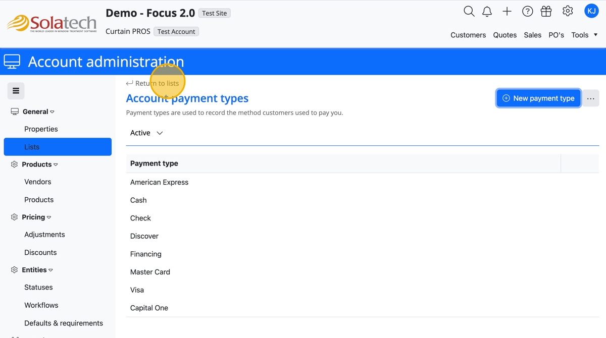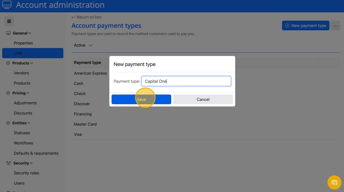 - Click "Payment types"