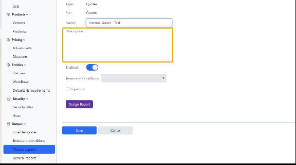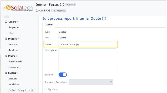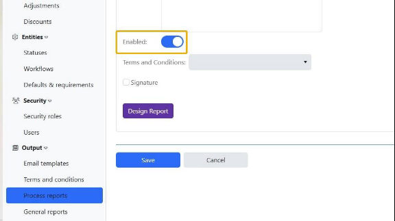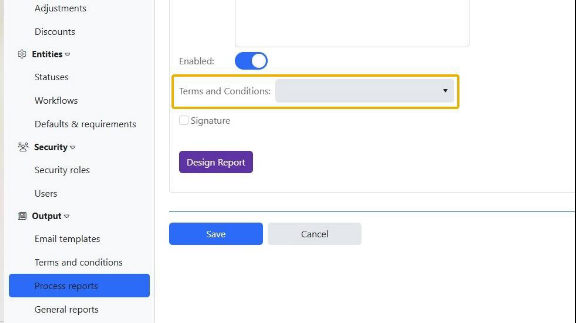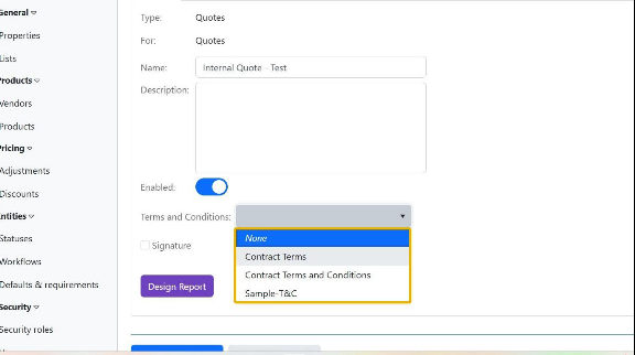 - To add Terms and Conditions to the report, click the "Terms and Conditions" dropdown