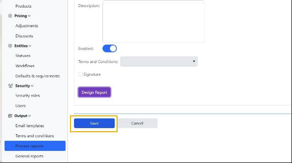 Alert! If your report doesn't contain a field to place the Term & Conditions on it, selecting the dropdown won't automatically place it on your report.