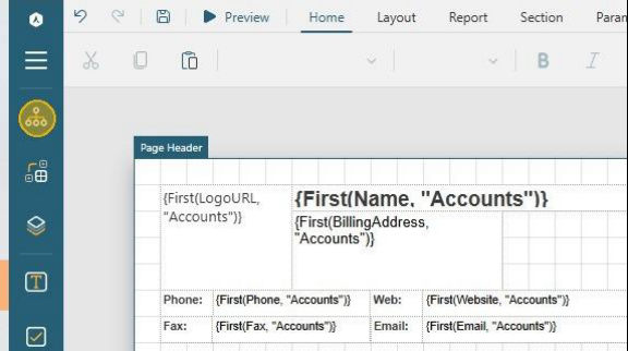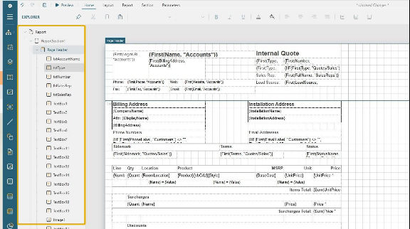 - A sidebar will show on the left of the screen with a list of all fields in the report and where they're located