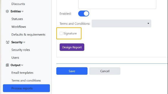 Alert! If your report doesn't contain a field to place the Signature on it, selecting the dropdown won't automatically place it on your report.
