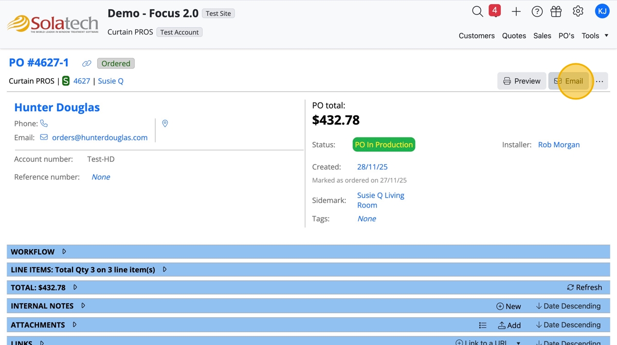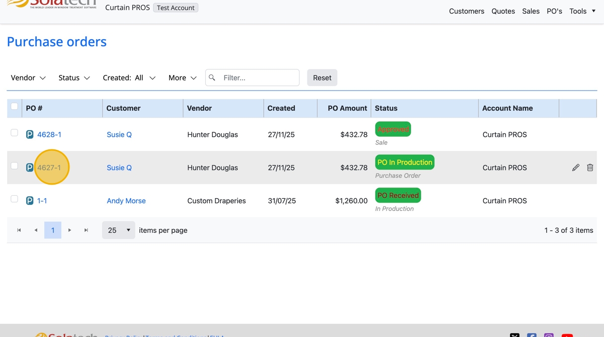 - Click the PO number