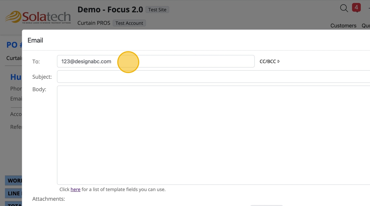 - Click the "To", "Subject", and "Body" fields