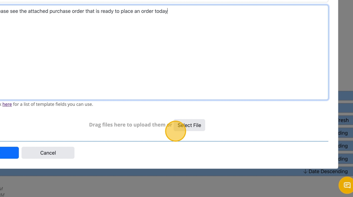 - To add an attachment, click the "Select File" button or drag and drop