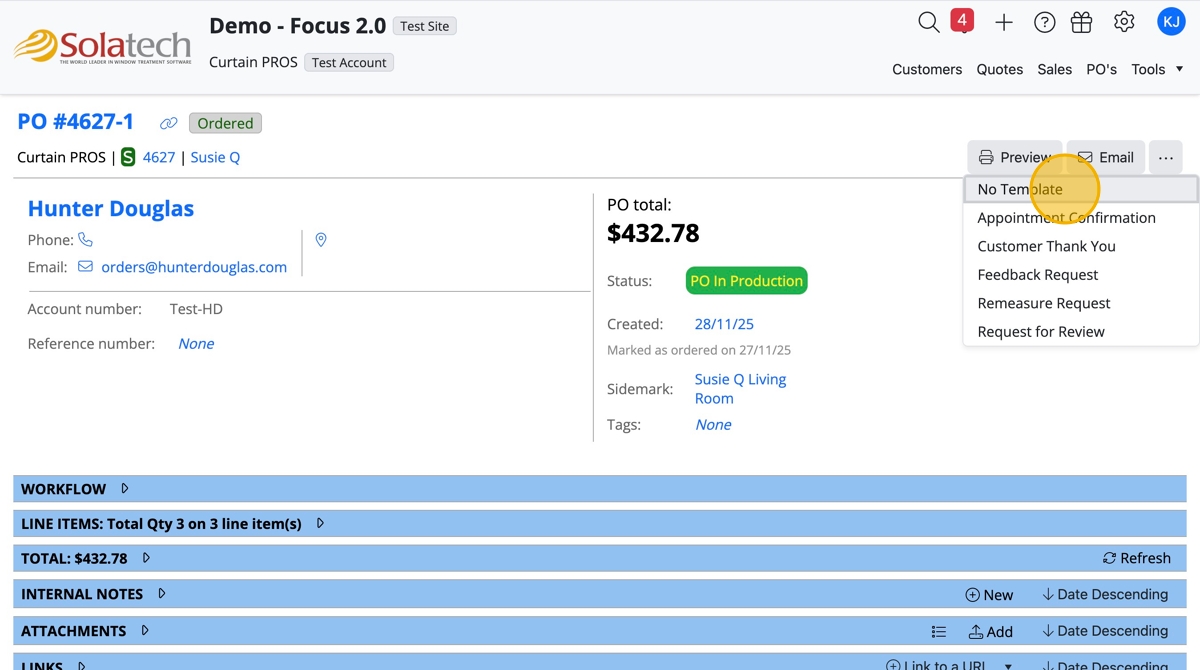 Summary: As a dealer, you may wish to split individual line items from the rest of a Purchase Order (PO). Below are instructions to assist Account Administrators in enabling split POs for individual products. For example, if quoting Norman shades, ...