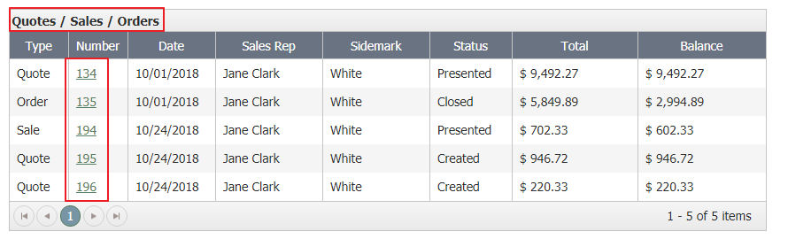 - All Quotes, Sales, and Orders are listed under the customer that is associated with it.