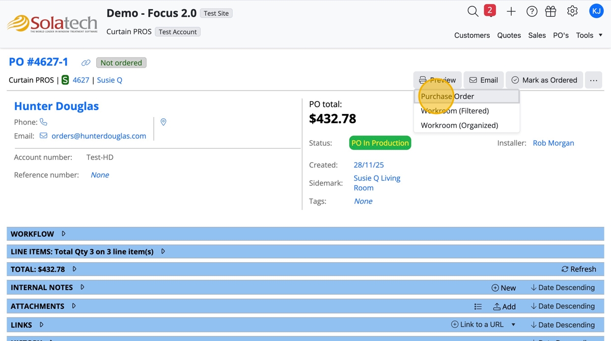 Summary: As a dealer, you may wish to split individual line items from the rest of a Purchase Order (PO). Below are instructions to assist Account Administrators in enabling split POs for individual products. For example, if quoting Norman shades, ...