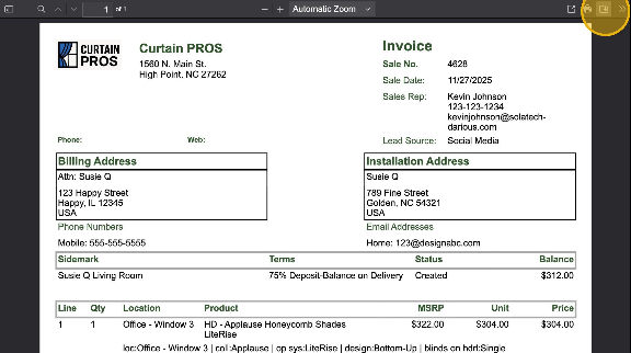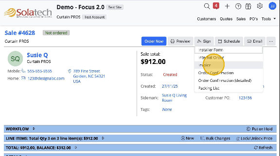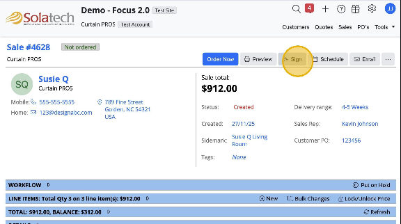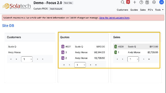 - Navigate to and click the Quote or Sales number to open the Quote/Sale page