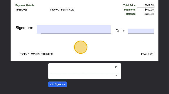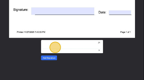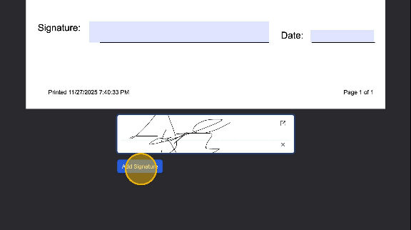 - The signature will be saved at the bottom of the document and the date field will autopopulate with the signature date