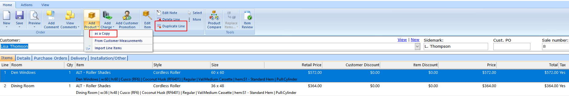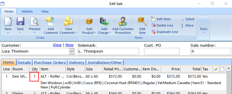 - If the new line item is an exact copy of another line in the quote (in the same Room Location) modify the quantity instead of creating another line item.