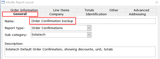 - On the first tab, General, change the name of the report.