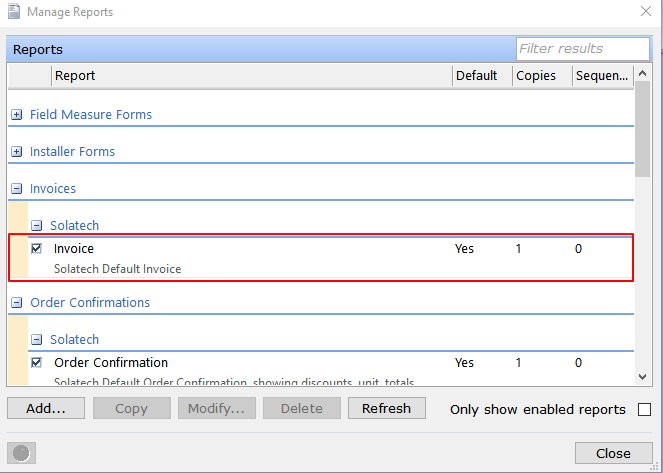 Summary This article will explain how to modify existing Terms and Conditions on a Process reports. More Information From within Solatech Window Covering Software, select Tasks, Manage Process Reports. In the left hand column, under “Select a ...