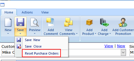 - Click the down arrow under the Save command and click Reset Purchase Orders.