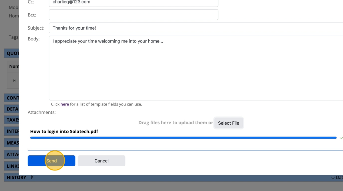 Summary Solatech allows users to set up personalized email templates that can be sent to customers from within the system. Templates to send to users (Sales Reps and Installers) can also be created. This knowledge base articles provide instructions ...