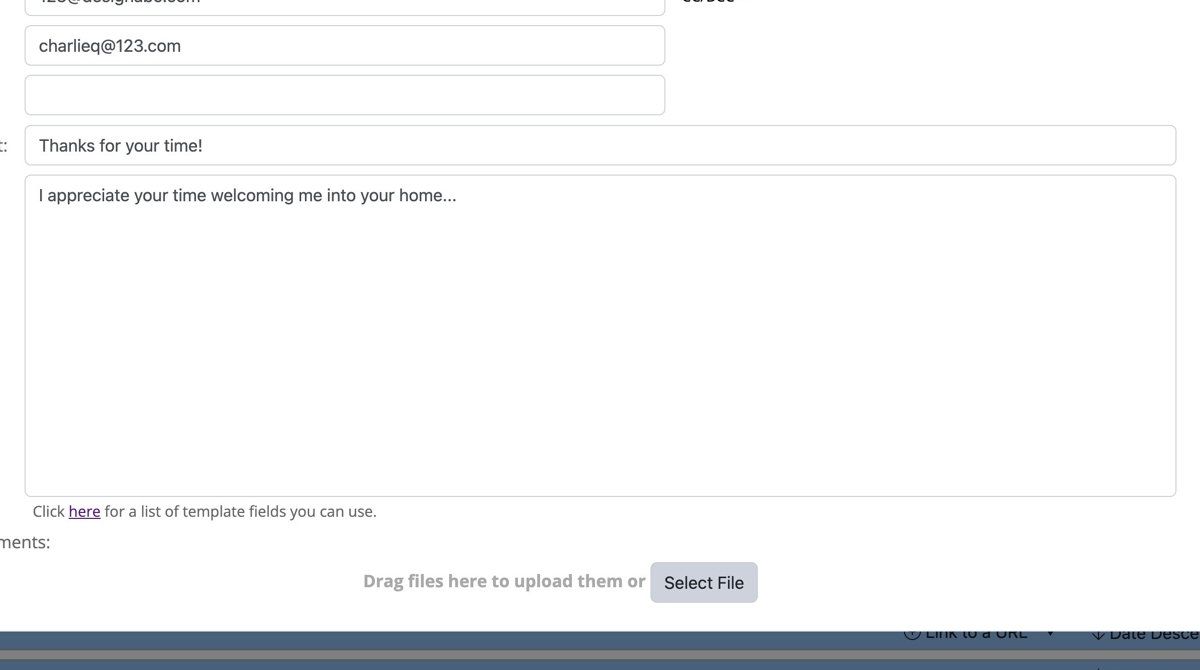 - If wanting to add an attachment, click "Select File" button to look up a document from your computer