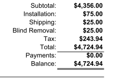 Installation/Shipping/Other and will show the total of the three
