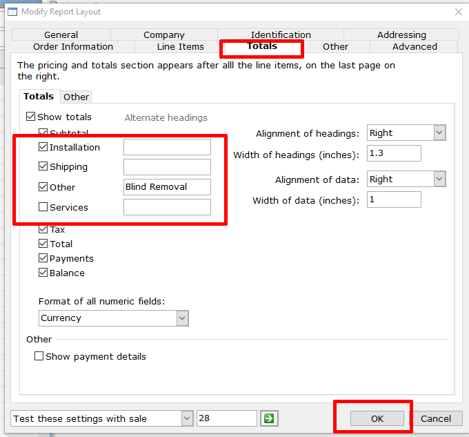 - On the Modify Report Layout window, select the Totals tab.