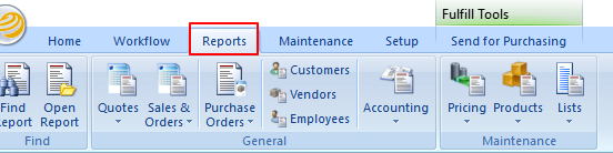 - Looking under the different categories on the Reports tab (Quotes, Sales & Orders, Customers, etc.)