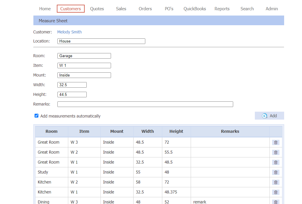 Using Measurement Sheets to Build a Quote