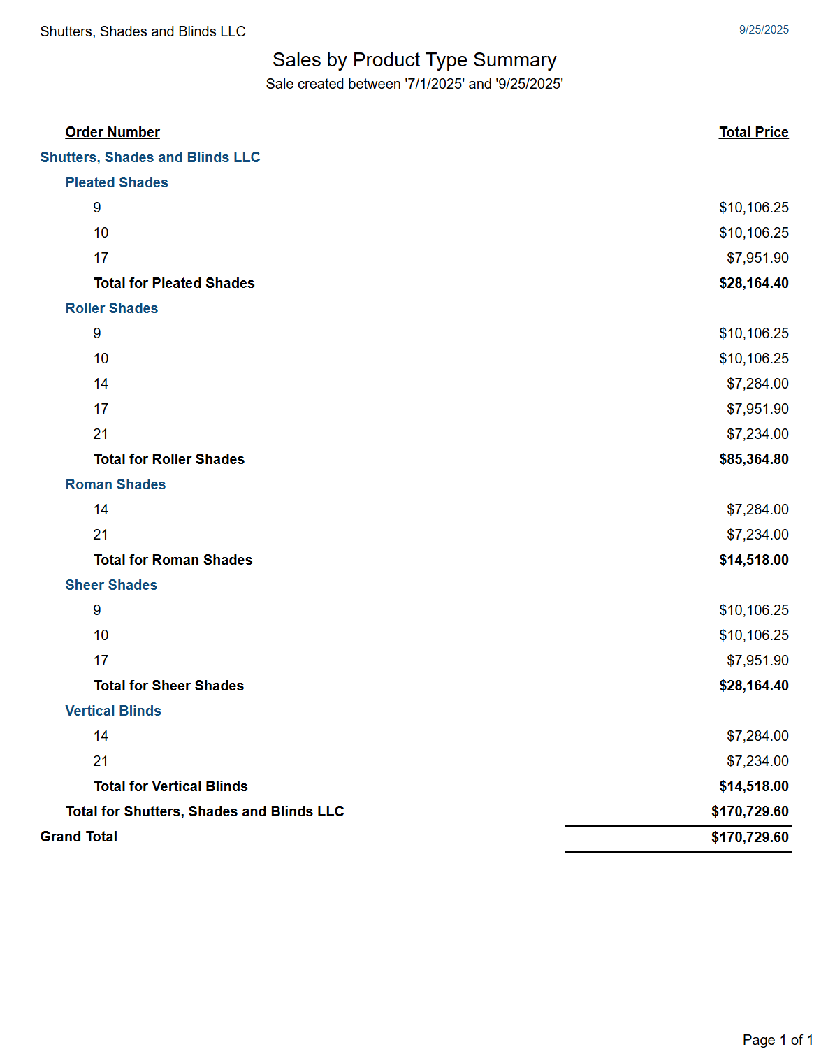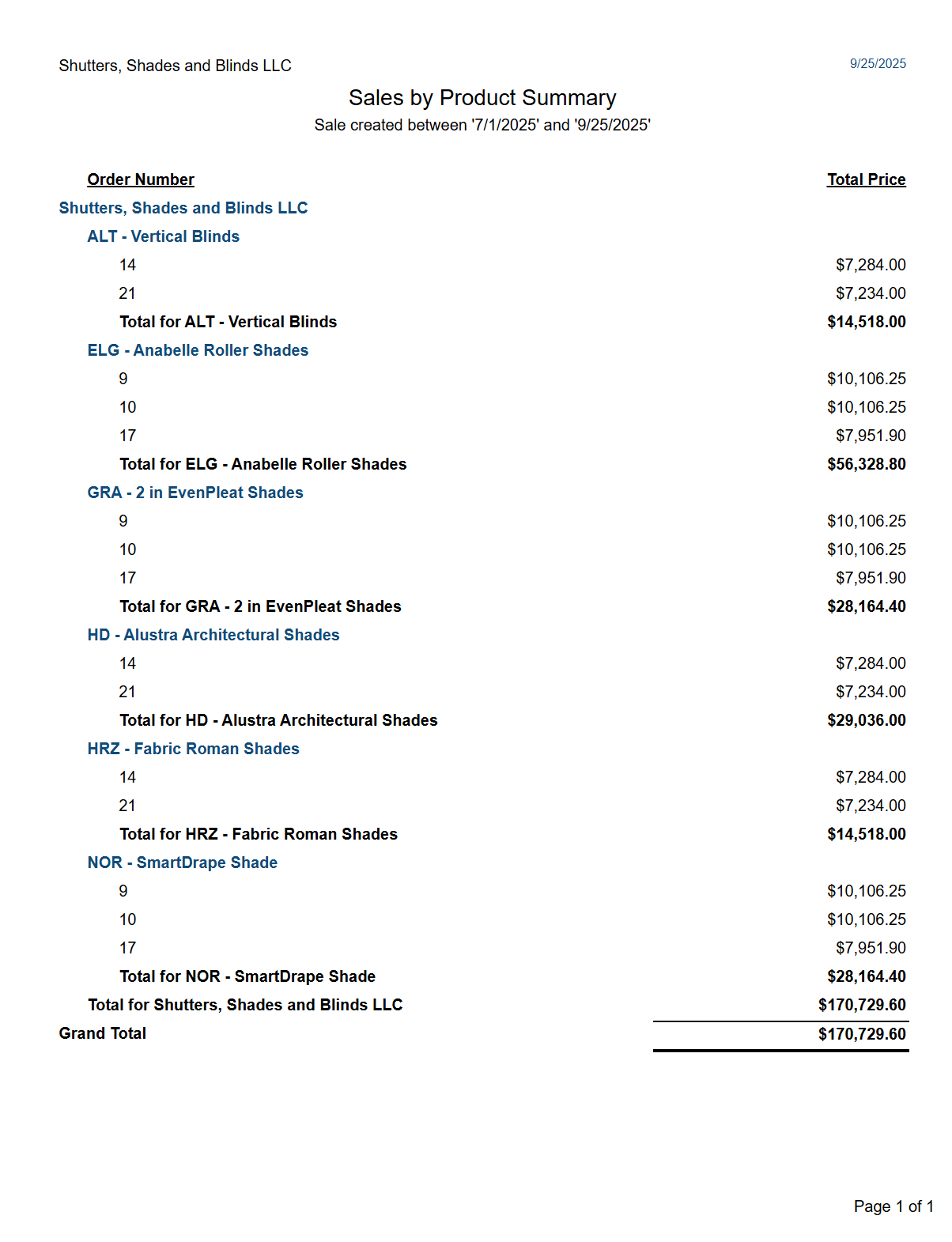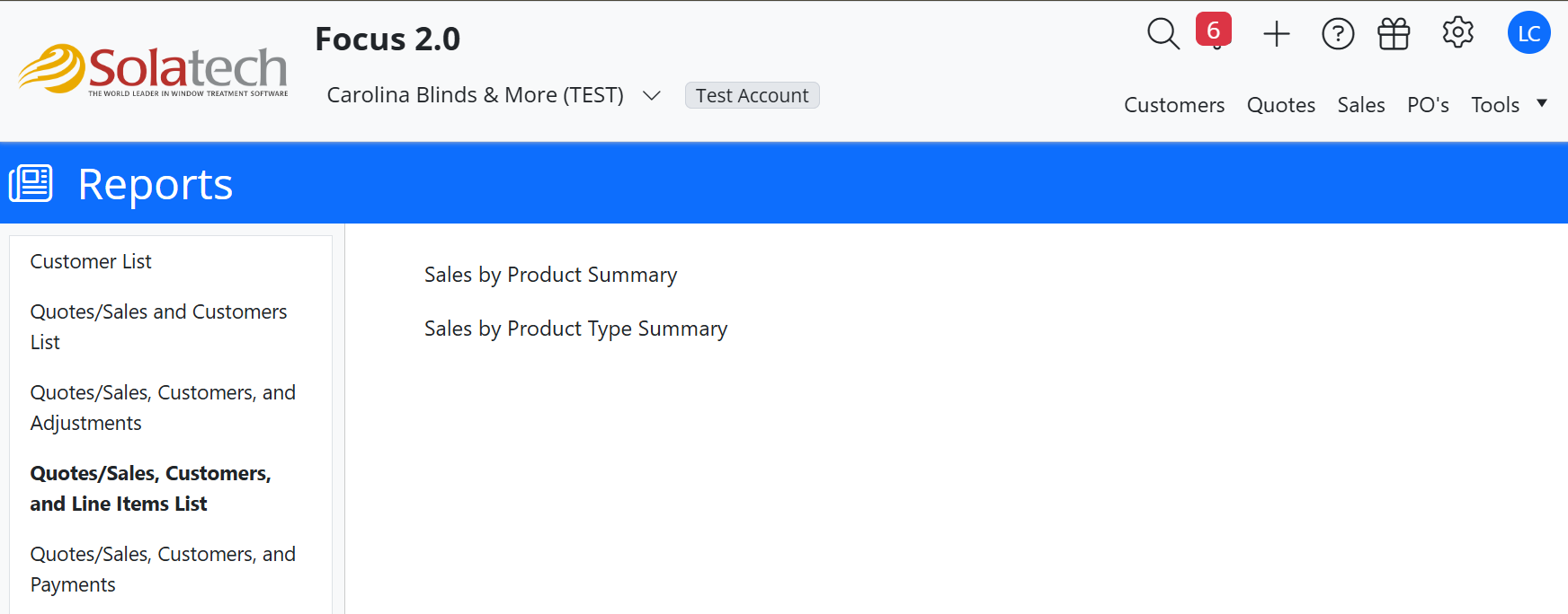 Quotes/Sales, Customers and Line Items List > Sales by Product Summary