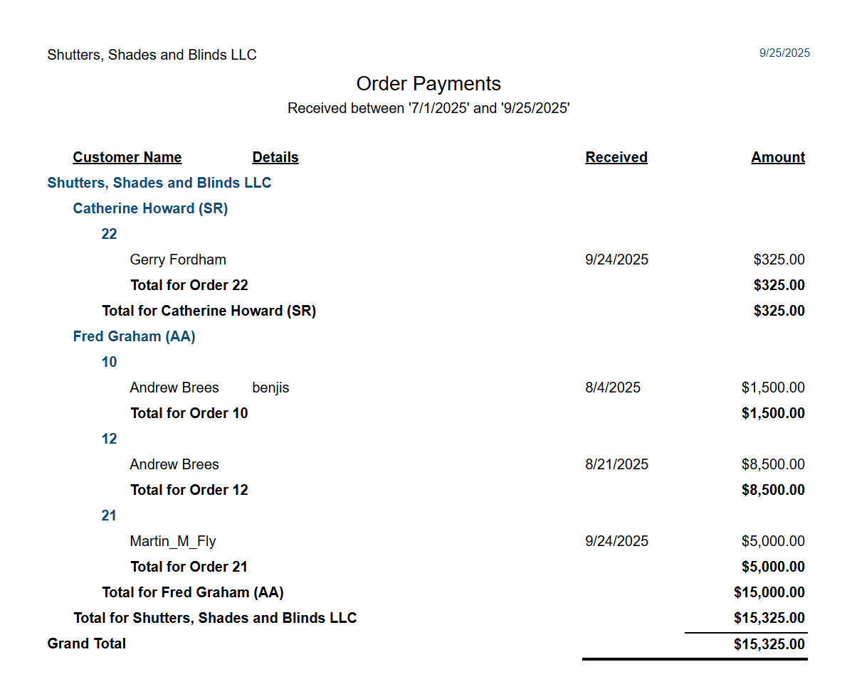 Quotes/Sales, Customers and Payments > Order Payments