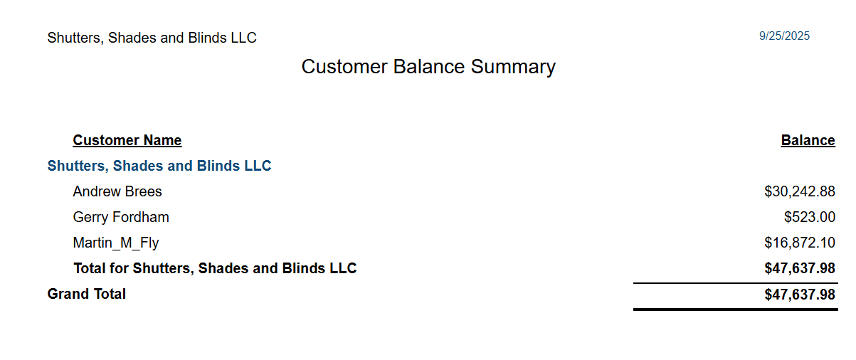 Quotes/Sales and Customers List > Customer Balance Summary