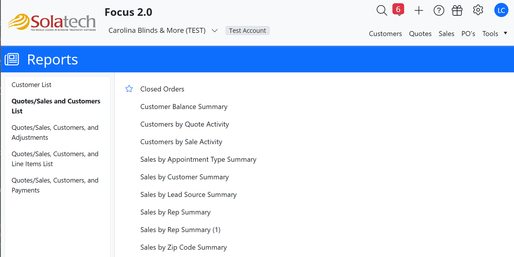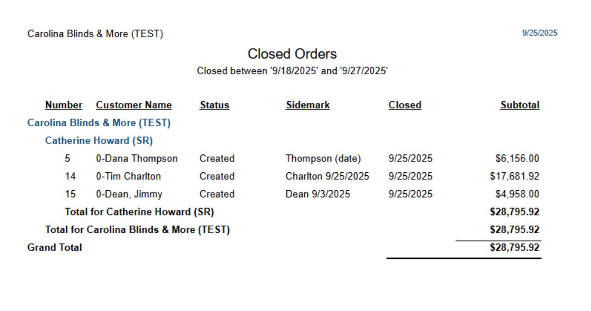 Quotes/Sales and Customers List > Closed Orders