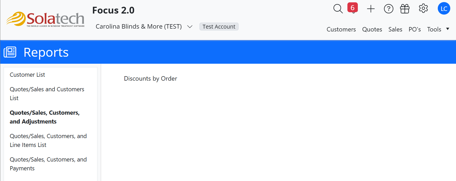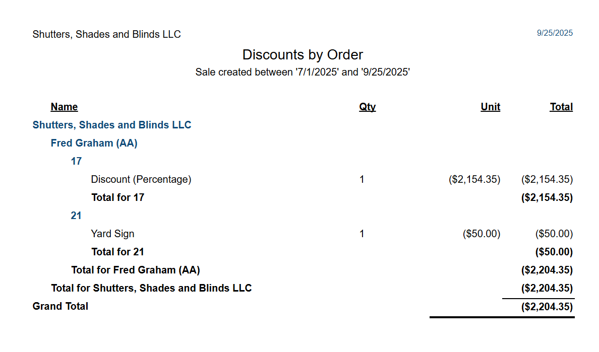 Quotes/Sales and Customers and Adjustments > Discounts by Order