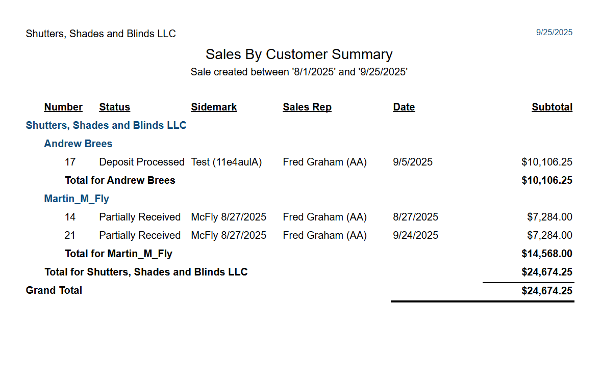 Quotes/Sales and Customers List > Sales by Customer Summary