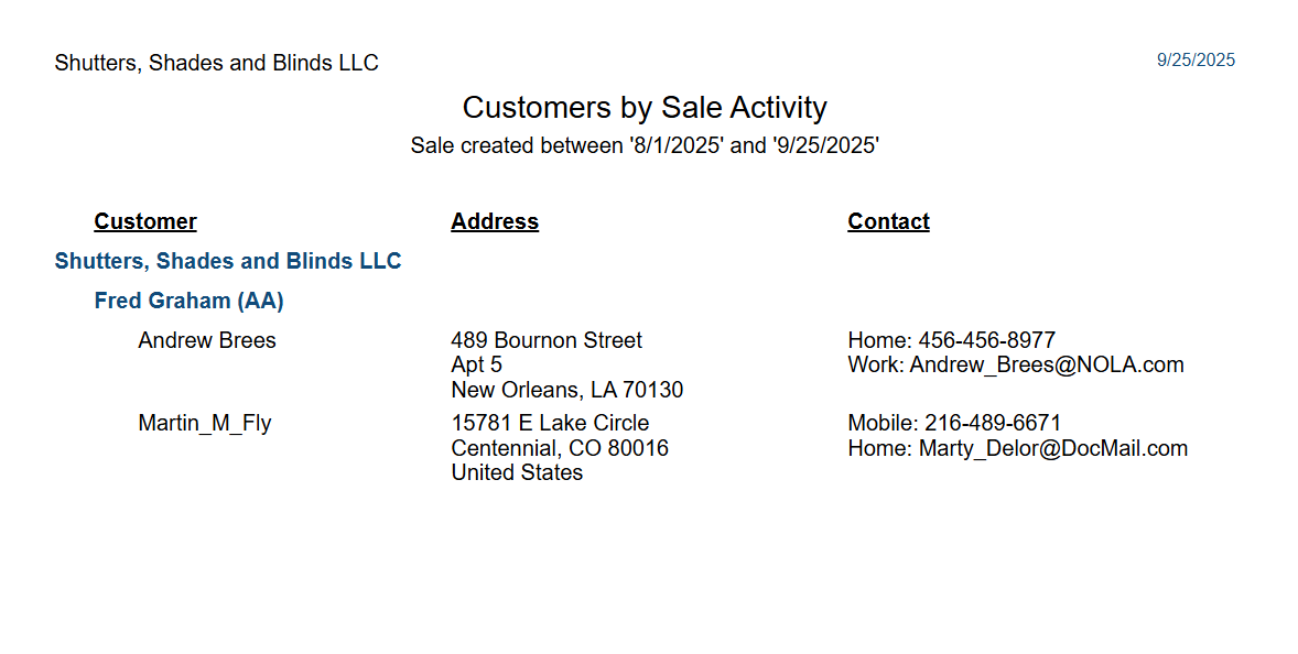Quotes/Sales and Customers List > Customer by Sale Activity