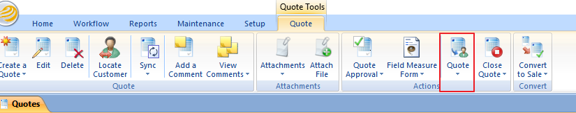 - From the Quotes menu, highlight one quote and click on the down arrow under 'Quote' and select 'Preview'.