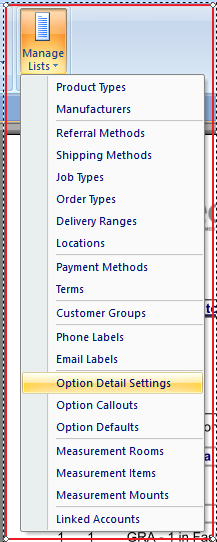 - Go to your Maintenance menu, click on 'Manage Lists", from the drop down menu, select "Option Detail Settings".